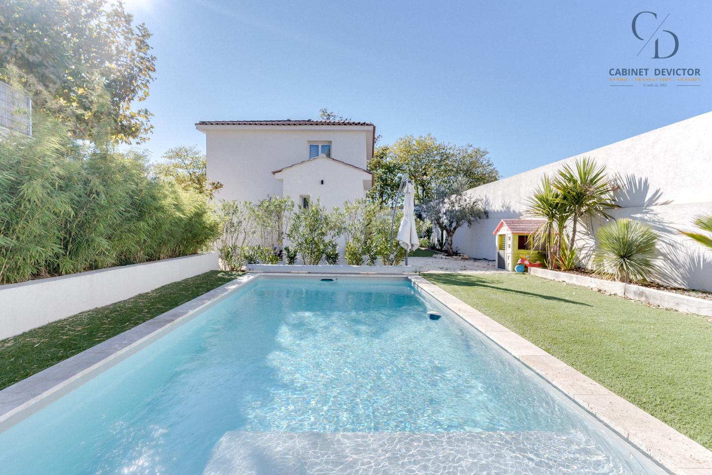 Le Jardin a été entièrement arboré, avec un système d'arrosage automatique, il est composé d'un espace terrasse pour déjeuner à l'arrière, ainsi que d'une piscine,